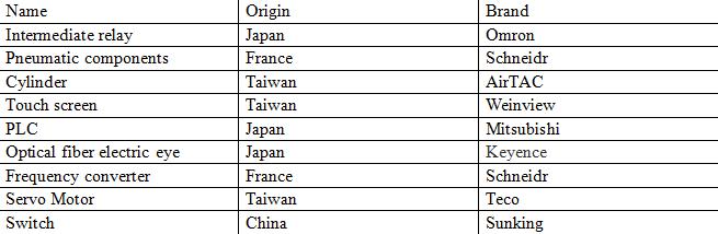 2) Adopter des composants de marque de renommée mondiale dans les pièces pneumatiques, les pièces électriques et les pièces de fonctionnement.