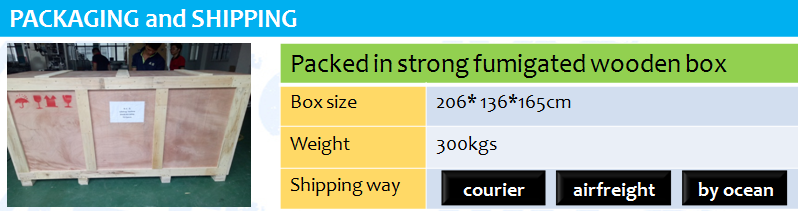 | Service après vente | Le vendeur fournit un instrument et une vidéo expliquant comment installer, régler et utiliser la machine dès qu'elle est prête. Le vendeur fournit un service à temps lorsque l'utilisateur a un problème d'utilisation. Le vendeur peut envoyer un ingénieur à l'usine de l'acheteur pour l'installation, la mise en service et la formation, l'acheteur devrait être responsable de la chambre et de la pension, des billets d'avion et des frais de visa. |