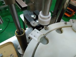 Lorsque la bouteille se rend à cette station, la tête de bouchage la visse automatiquement.